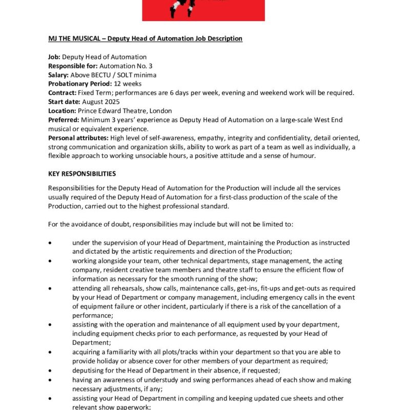 Deputy Head of Automation Job Description- MJ – July 2025