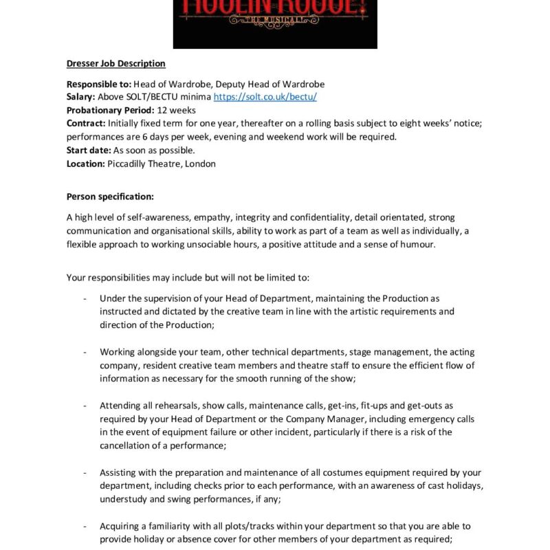 Dresser Job Description 2024