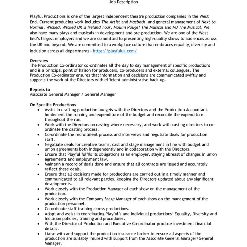 Production Coordinator JD June 2024