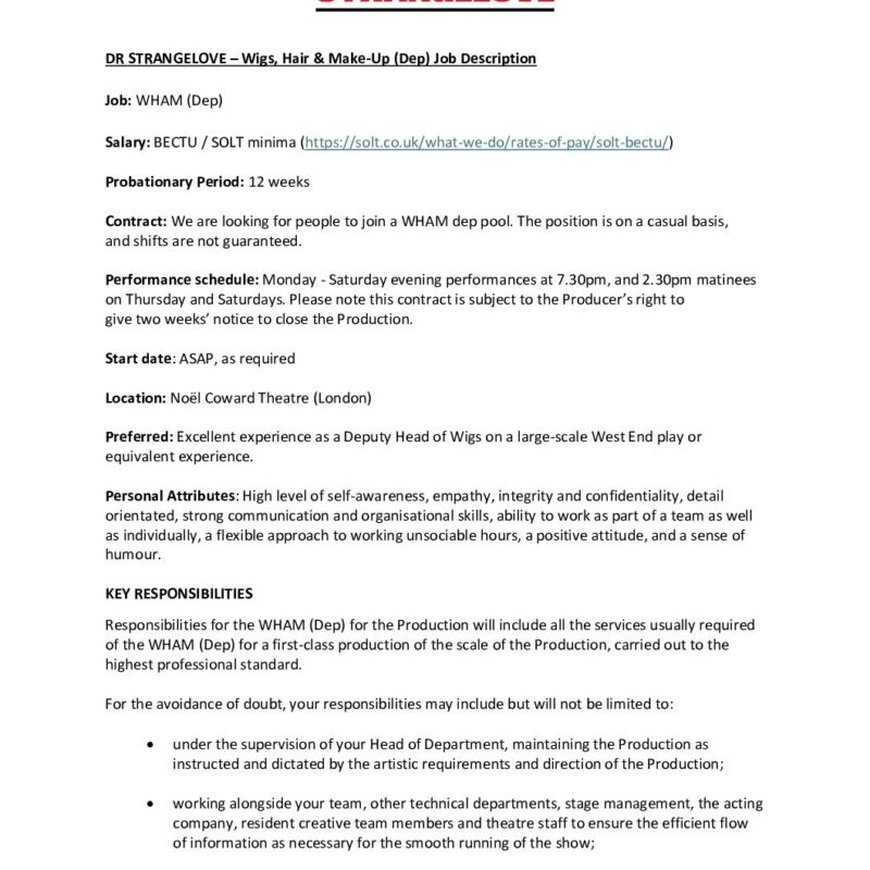 WHAM DEP – Job Description – Dr Strangelove
